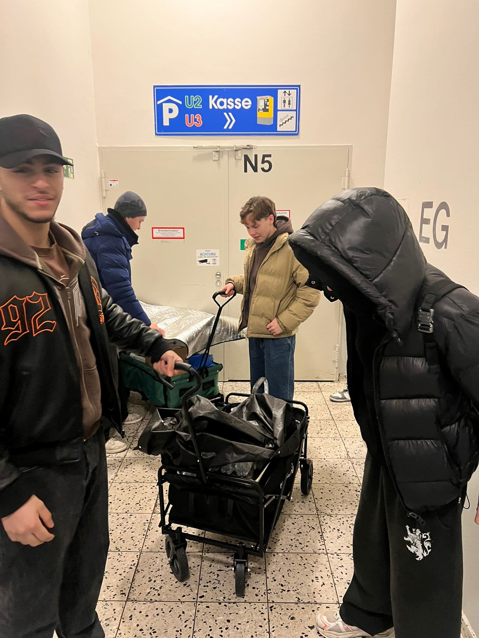 Verteilung von Lebensmitteln, Mützen, Socken und selbstgebackenen Keksen.